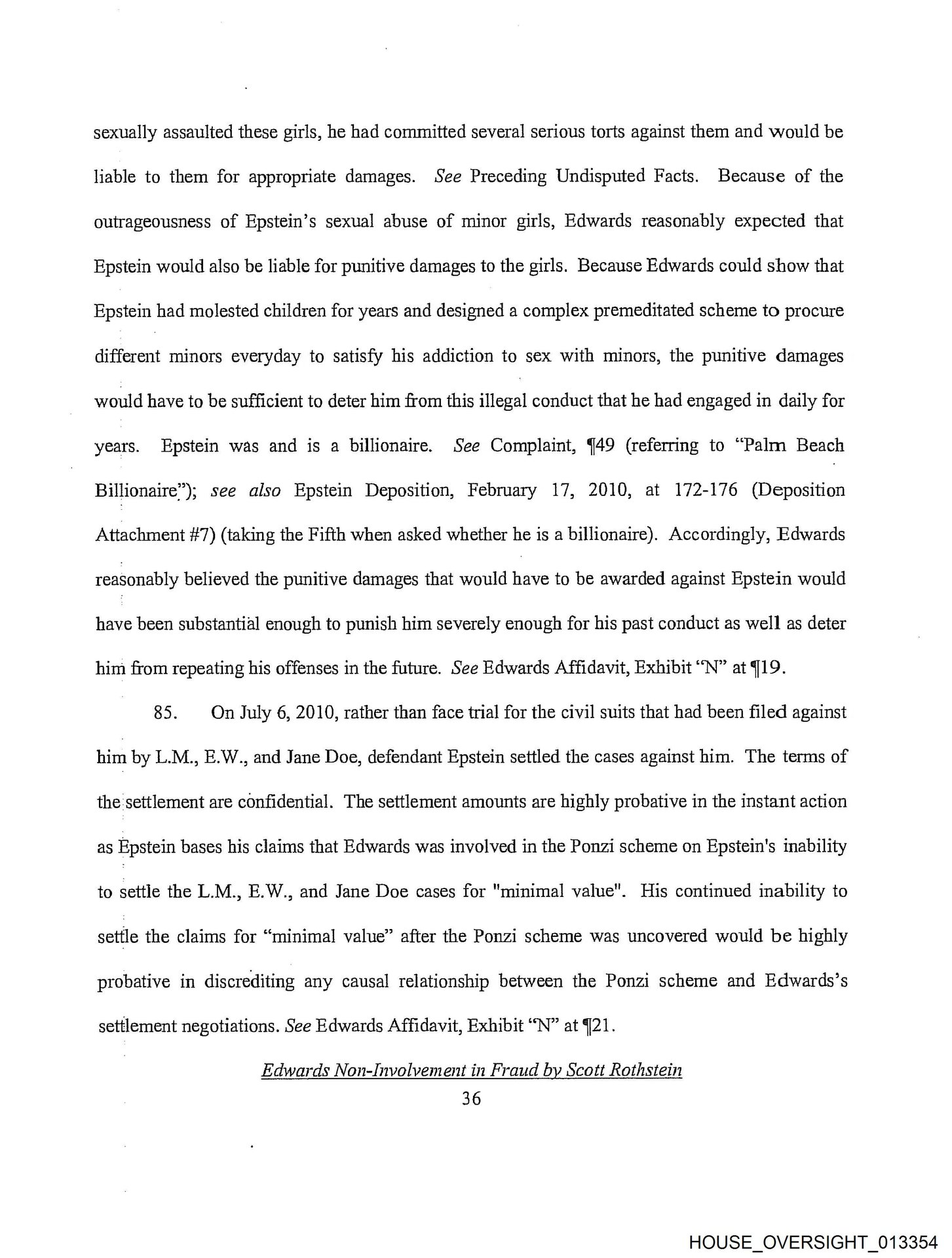 - HOUSE_OVERSIGHT_010566… and BRADLEY J. EDWARDS, individually, Defendants, ee . STATEMENT OF UNDISPUTED FACTS Defendant Bradley J. Edwards, Esq., offers the following specific …