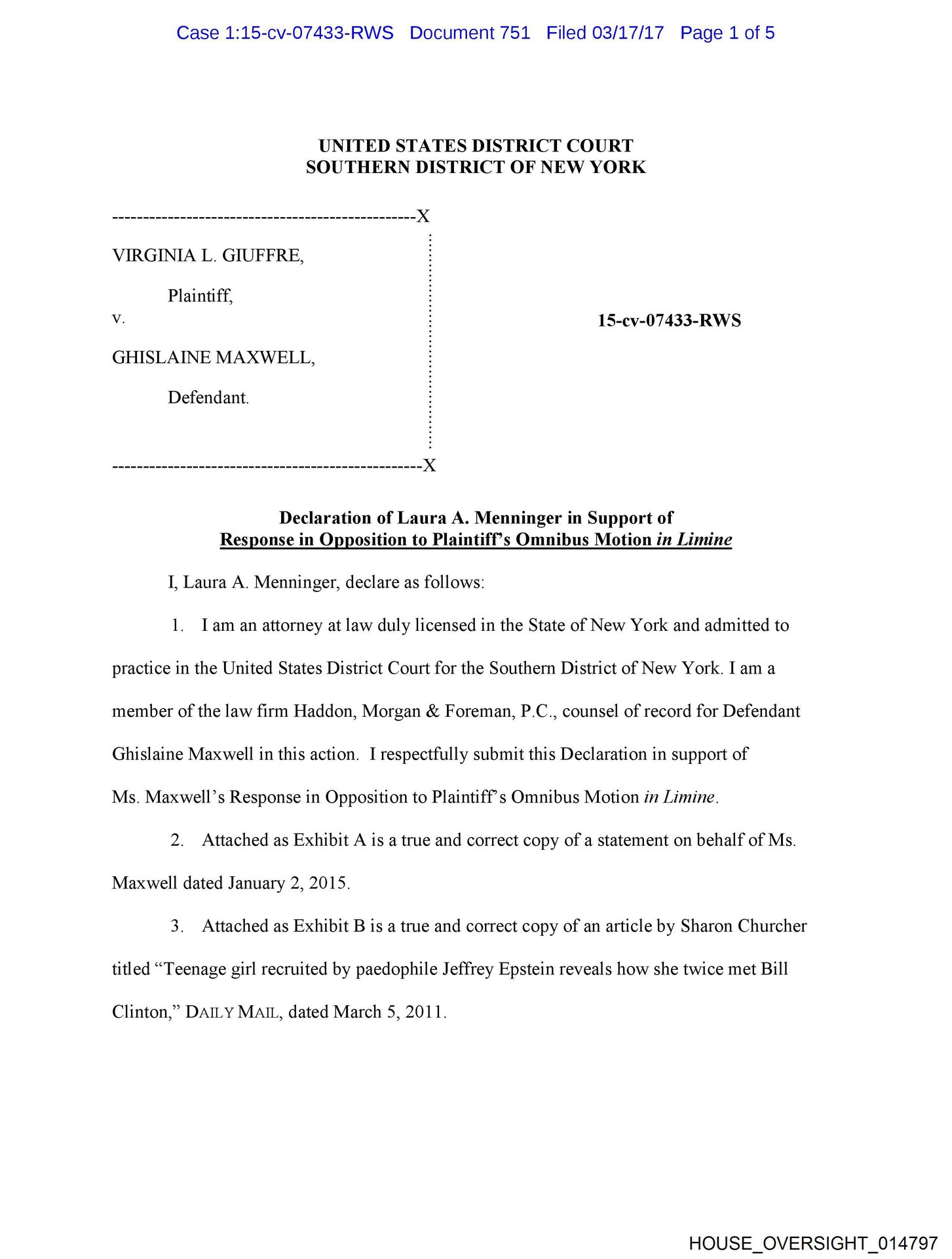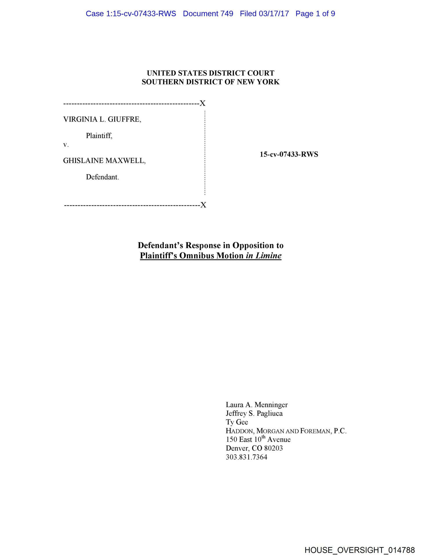 - HOUSE_OVERSIGHT_010589… 2009. See Deposition Notice attached as Exhibit “BB.” Maxwell was represented by Brett Jaffe of the New York firm of Cohen …