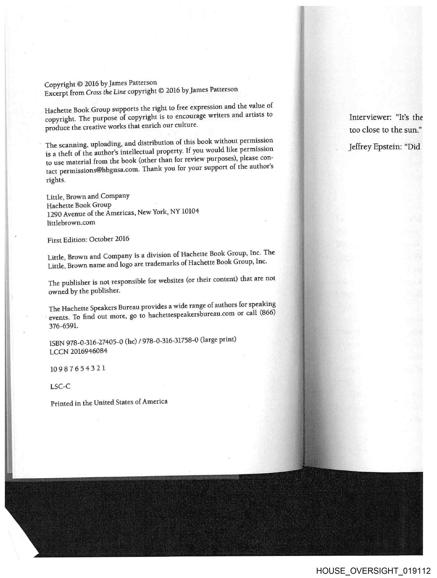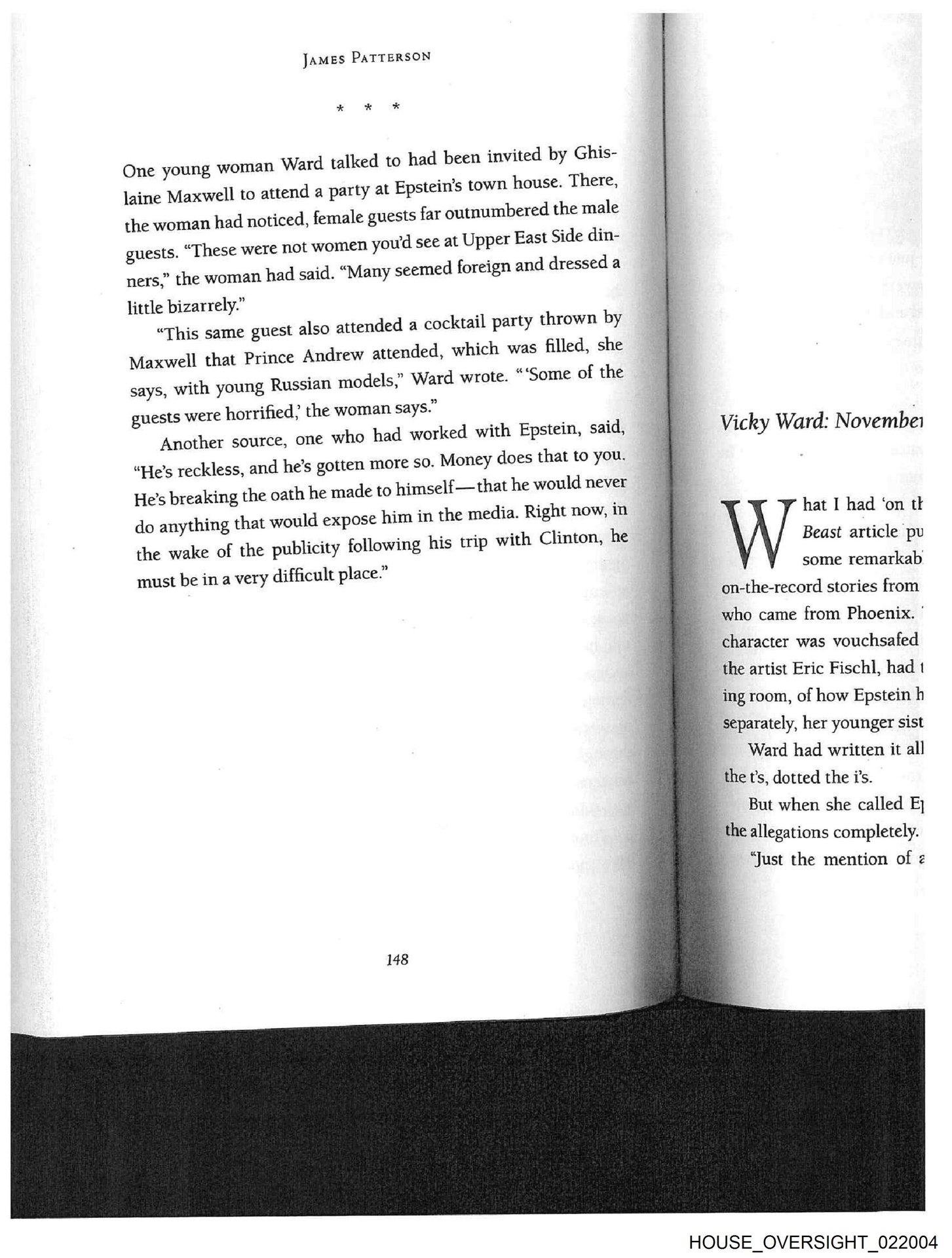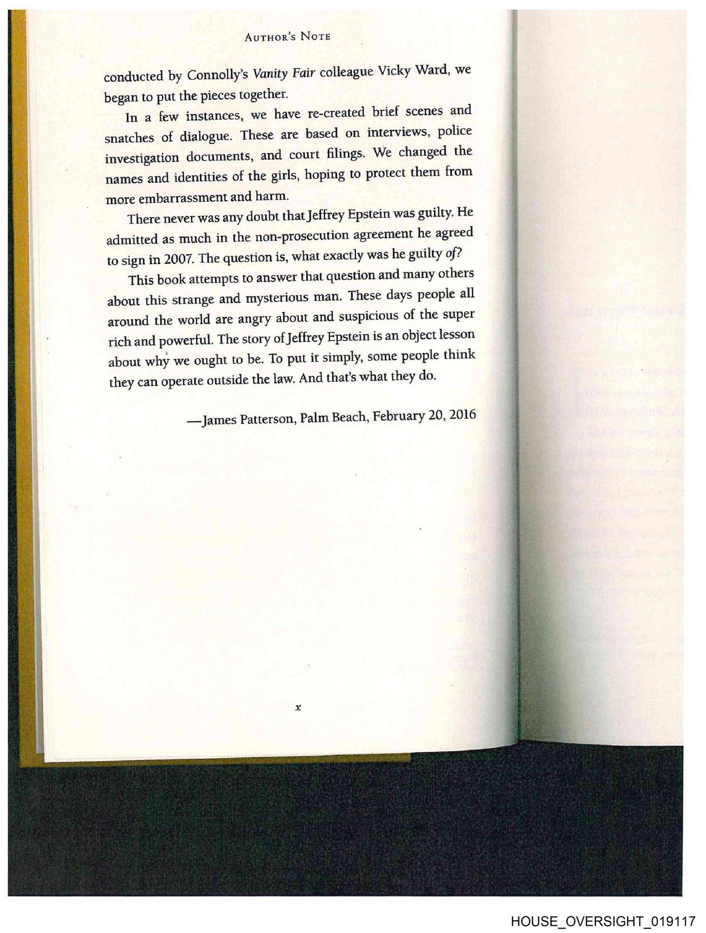 - HOUSE_OVERSIGHT_010517James PATTERSON { Finn If Epstein’s legal team had wanted to remove Weiss from the “I don’t know how much …