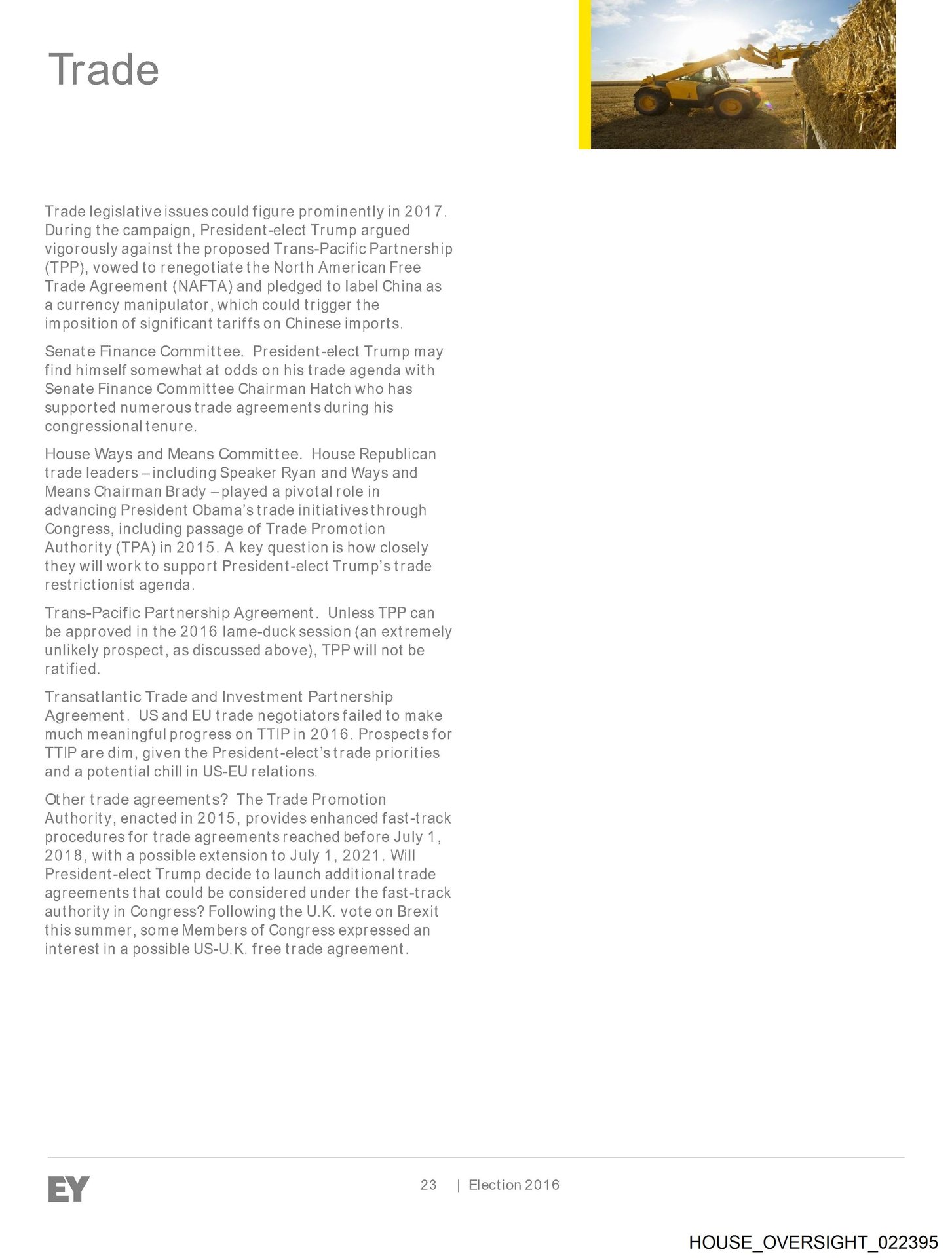 - HOUSE_OVERSIGHT_030866… think would be price sensitive to an unbalanced election outcome tilted toward one party. Dividing issues: Taxes, trade, favored infrastructure types …