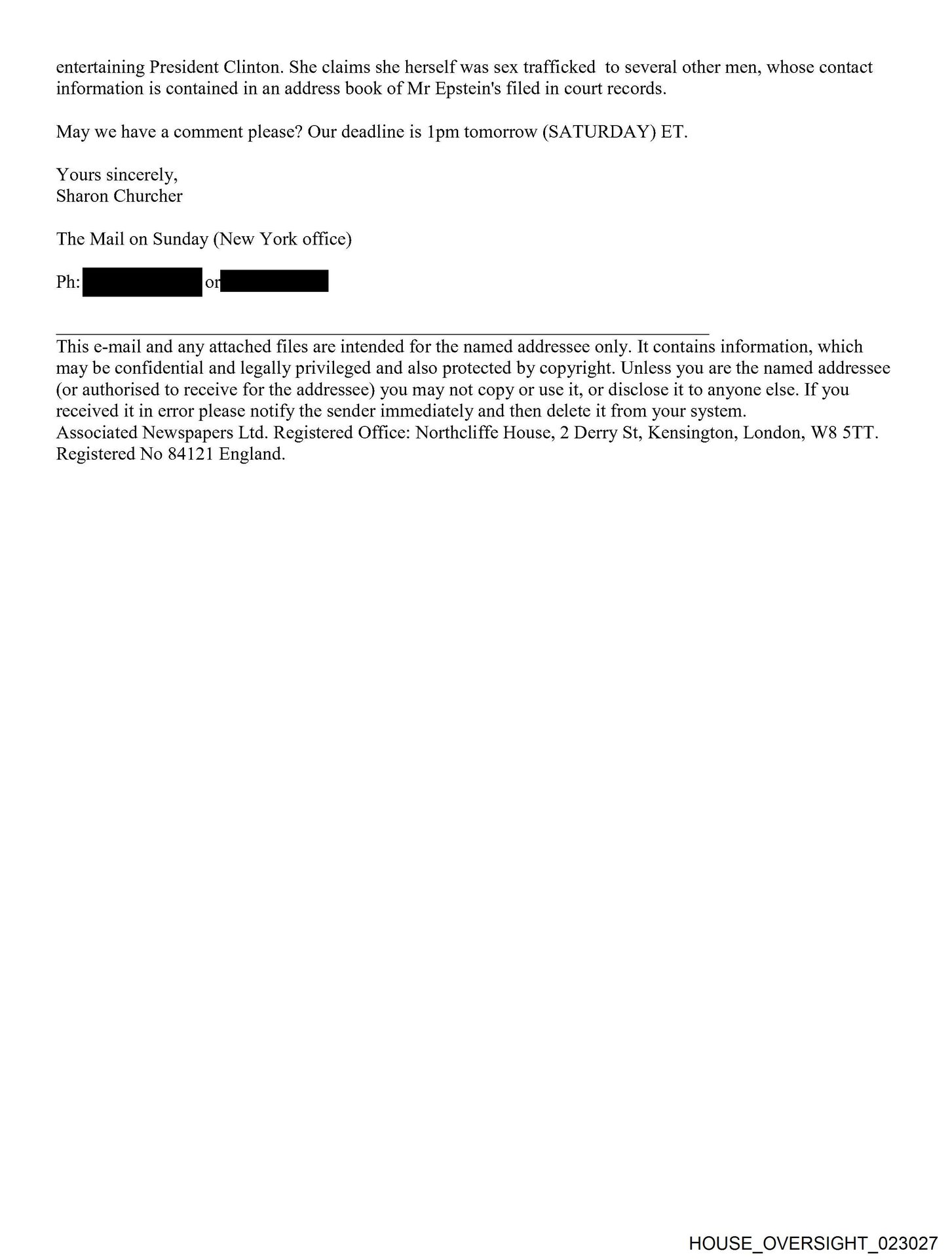 - HOUSE_OVERSIGHT_029627… Alexander of Palm Beach, Florida, whose phone has since been disconnected with no forwarding information. The Daily Beast's second article provided …
