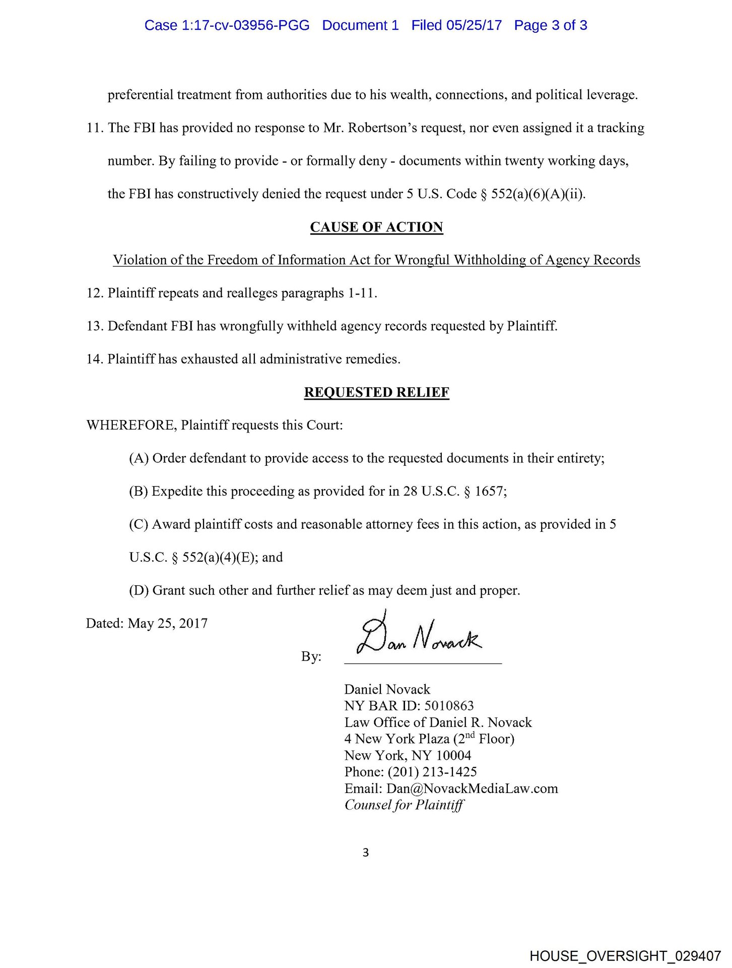 - HOUSE_OVERSIGHT_010530… document concludes. “If the ke sure they'd covered the bases, United States receives a Freedom of Information Act request or Roy …