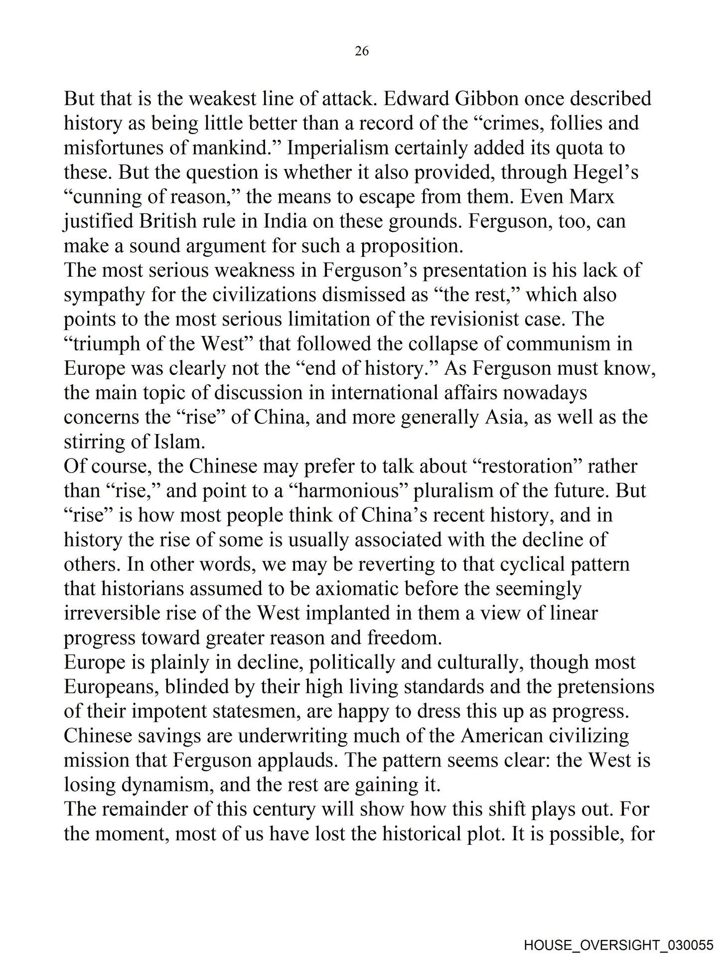 - HOUSE_OVERSIGHT_029660… "Well, frankly, the US didn't have the wisdom. It just wanted to celebrate its peace dividend. The two Clinton terms and …